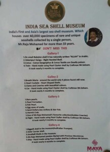 India Sea Shell Museum at Mahabalipuram, Tamil Nadu. A must see for everyone actually. It has on display an amazing private collection of nearly 40000 sea shells of nearly all types and species, a collection of a single gentleman Mr. Raja Mohammad. It is both informative as well as a treat for the eyes.