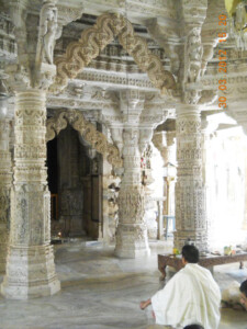 The main Jain Shrine at Ranakpur. No wonder, Arab travellers to India just before and around 1000 AD, while looking at the beautiful temples dotting the whole landscape of the Subcontinent (from Kabul to Madurai), commented that `these do not appear appear to have been made by the hand of man, but by jinns comming from the sky’. Sadly most of them are lost forever due to the ravages of time and man but Rajasthan was relatively more lucky.