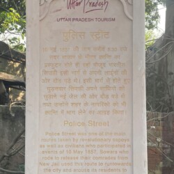 The primary sites of events linked to the events as they occurred at Meerut on the evening of 10th May, 1857, occurred around a localized area extending from Sadar Bazaar upto the City Railway Station. A Kranti Path or walking footpath covering the sites of major events as they occurred on that fateful day has been established, covering a distance of 4.4 km. It begins at Shaheed Smarak and ends there, taking anyone who follows it by foot or bicycle to the sites of major events, 21 bilingual stone markers being present as a guide at these historical sites. The project has been undertaken by the Dept. of Tourism, Govt. of Uttar Pradesh. These photographs are of my inspection of the work being undertaken on 4th of February, 2023.